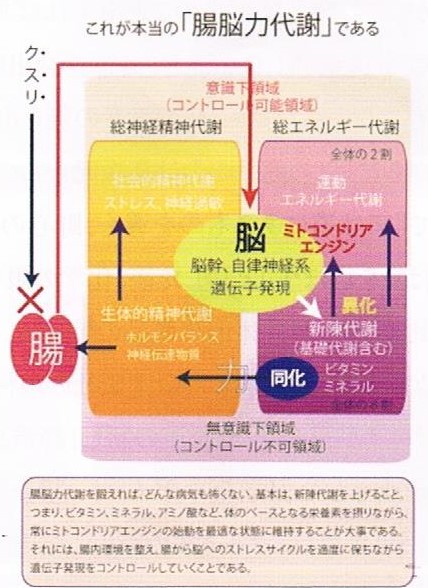 知らないと危険なことに・・・ 「代謝の基本」 ![]() 何をやっても痩せられない、 疲れが取れない、 風邪をひきやすい、 免疫力が低下してきた、 肌荒れ、アトピー、花粉症、 最近忘れがち、 イライラ、落ち着かない、さらには、 糖尿病予備軍、寝られない、 躁うつ、などなど、 どれかに当てはまる。 またこれらは不安を感じている方は 是非知っておきたい。 知らないと危険なことに・・ ![]() 世間では、 ある大学の先生がテレビなどで話しただけで その話題がブームになったり、 本が売れたり、注目を浴びたりする。 ダイエットに関してがいい例である。 例えば、 糖質制限食によるダイエット法が 流行ったり、 カロリー制限すると 長寿遺伝子がオンになり、 長寿だけではなく 若返るというから驚きである。 赤ワインなどに含まれる レスぺラトロールを摂ると 同じように長寿で若返るという 番組を以前テレビで 放映されていた。 これらは本当なのだろうか・・・? いずれもヒトではなく全く根拠のない、 曖昧なデーターを元に 面白おかしく情報を応用し、 ここぞとばかりにネタを利用し、 時には捏造して番組を制作し、 時を同じくして商品を販売する。 上記のネタに関してはこれが実態だ。 その証拠に某大学の先生は、 老化研究の第一人者として テレビ番組によく出ているが、 研究業績は長寿遺伝子の 専門家でもなければ、 レスペラトロールの専門家でもない。 著名雑誌サイエンスに 発表されたサルを用いた実験が 元となって勝手に引用しているに過ぎない。 長寿遺伝子に関しては、 サーツーという遺伝子の 研究データーが元です。 ヒトにはサーツーという 遺伝子がないにも関わらず、 ある番組ではサーツーを題材に 特番を組んでいた。 確かにサルや線虫の実験では 間違いのない結果なのでしょう。 だからといって ヒトに当てはまる訳ではないはず。 すべては代謝を理解しな限り、 若返りや本当の健康というものは 程遠いものであろう。 食と健康、 それは栄養素と代謝の 基本を学ぶことにあります。 多くの方にぜひ知っていただきたい、 基本的な4つの代謝 図を参照していただきたい。 ![]() 通常、 代謝は異化というエネルギー代謝と、 同化というタンパク質合成の代謝に分けるが、 ここでは4つの代謝に分けて考えてみます。 まずは、 ミトコンドリアを中心とした総エネルギー代謝、 そしてもう一つは、 ホルモンのバランスや神経伝達物質の 分泌に大きく関わる 総神経精神代謝の2に分けます。 さらに、 総エネルギー代謝は、 運動エネルギー代謝と 新陳代謝の2に分けられ、 新陳代謝の中に 基礎代謝を含めて 考える。 一方、 精神代謝は社会的と生体的の 2つに分け、 社会的精神代謝は 社会環境によるストレスを反映し、 生体的精神代謝は 体内のホルモンバランスや 神経伝達物質の分泌に関する領域である。 ここで重要なことは、 これら全ての代謝の殆どが 自分でコントロールできない。 いわゆる無意識支配下に あるということである。 つまり、 代謝が悪い、老化してきた、 またはホルモンバランスが 悪いなどは、 自分でコントロールできないため、 何をどうすればいいのか 分からないのが現状である。 もし、 その改善方法があり、 また老化を防ぐ方法があるならば、 皆さんは実行したいに違いない。 総エネルギー代謝のうち、 非コントロール領域である 新陳代謝は全体の約8割を占めている。 頑張って頑張って運動して、 カロリーを消費するとしても、 全体の2割程度にすぎない。 これでは当然、 痩せるはずもなければ、 新陳代謝が衰えていくだけ 健康を害することになってしまう。 さらに生体的精神代謝も同様、 非コントロール領域にあり、 ホルモンや神経伝達物質の合成、 分泌は自分の無意識下で 行われている。 薄毛、はげ、ニキビ、吹き出物、 肌荒れ、しみ、黒ずみ、 これらは 全てこの領域の代謝の衰えである。 では、 これらを改善するにはどうすれば良いのか。 それは、この4つの代謝のうち、 右下に位置する新陳代謝を 活性化することに他ならない。 そして、 ここを活性化する方法が一つだけある。 それは腸を整えること、 これが全てである。 この領域が崩れることによって、 全ての病気の引き金となり、 老化現象につながっていく。 そして次回詳しく述べるが、 この領域を破壊していく 最も怖い成分があることをご存じだろうか・・・? それが皆さんが普段使っている シャンプ-、リンスなどに 多く含まれていることを、 皆さんは心得ているだろうか。 実は老化現象は、 自分で引き起こしている。 そのことに早く気がついて欲しい。 ![]() 著者 「宮崎浩之 薬学博士」 1喧嘩はするな、 2意地悪はするな、 3過去をくよくよするな、 4先を見通して暮らせよ、 5困っている人を助けよ、 あなたなら出来ます応援しています happy&smile by サロンデイレクターKai ホームページ |